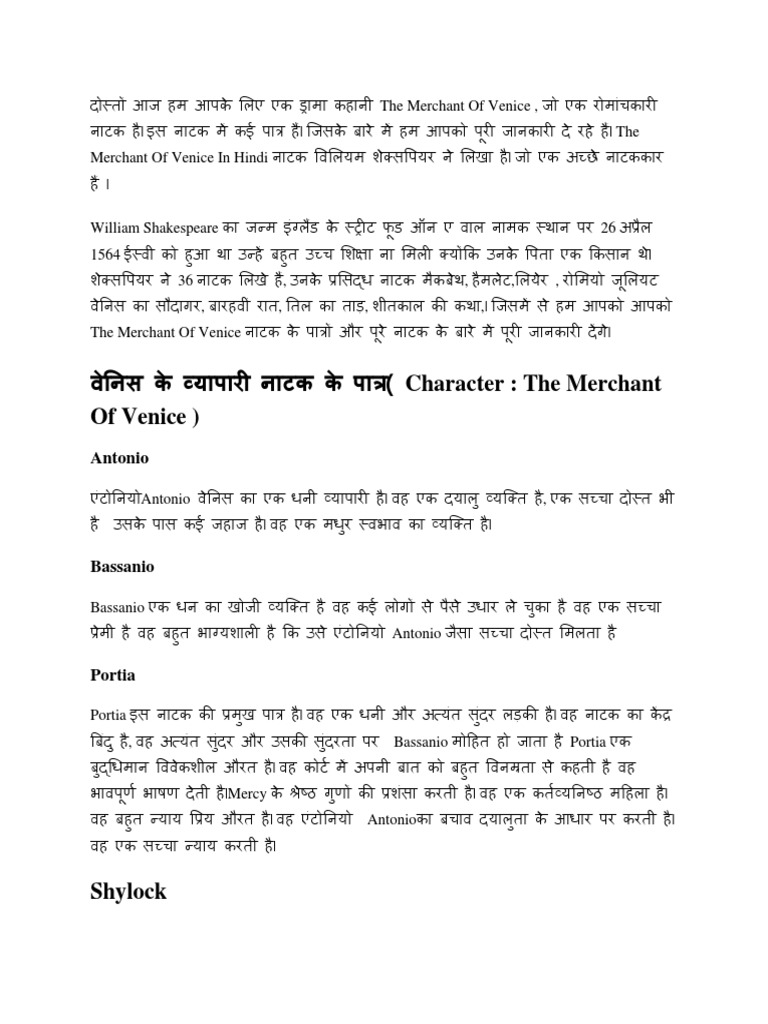 Merchant Of Venice Full Story In Hindi Pdf Ssc Hindi